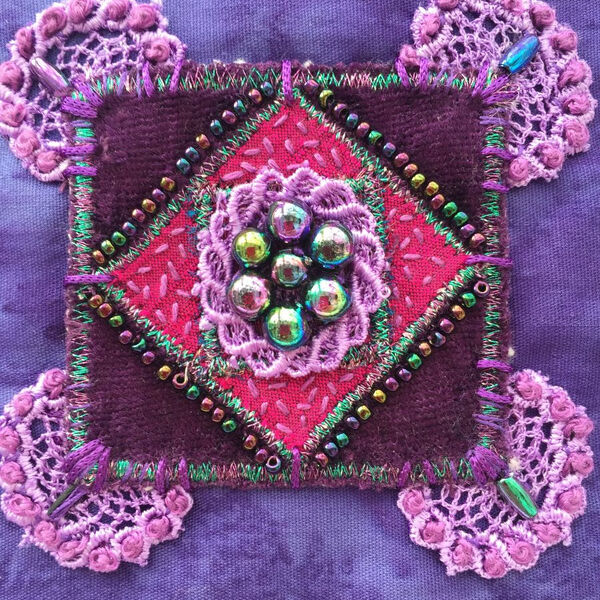 During the first lockdown in 2020, members of our group were invited to stitch a 10cm square in one of the colours of the rainbow. The response was wonderful and over 60 joyful, colourful squares were made into a panel which was presented to the new Winchester Hospice when it opened in September 2021.