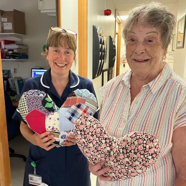 An ongoing project is to sew cushions for ladies who have had breast surgery at the Royal Hampshire County Hospital, Winchester. The heart shaped cushions fit snugly under the arm giving the breast protection from knocks or bumps. Bags to hold pumps and drains are also being made.